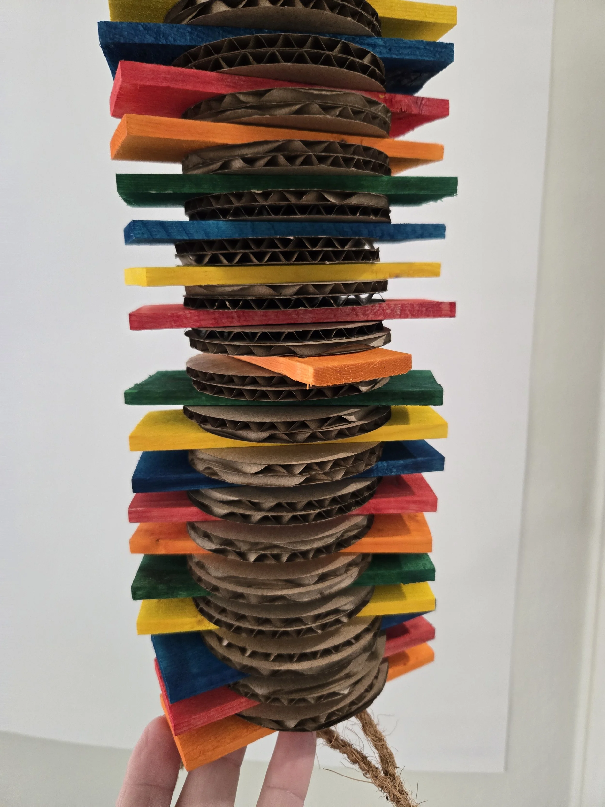 Red Macaw Cuddle $28.00 Knots and Wood $30.00 Wood Swing $25.00 Mini Bell Tower NEW $60.00 Cotton Bungee Extra Large $30.00 Silly Face on a Beach Ball $25.00 Tire with Indestructible Bell $25.00 African Grey Chew/Amazon Chew "New" Sale Price: $28.00 Original Price: $30.00 Sale Blocks on Logs $25.00 Monkey Sock Sale Price: $15.00 Original Price: $18.00 Sale Squidy Large $25.00 Big Beak Toy Sale Price: $30.00 Original Price: $35.00 Sale Brand New Never Before Seen!!!!!! $30.00 6 in Tire with Ball on Chain $30.00 Sold out SPINNER ON A PINEAPPLE $30.00 Play Tunnel Sale Price: $25.00 Original Price: $35.00 Sale PVC Forager $18.00 Sold out The Best Forager Ever!!! $45.00 Fun Foraging Ball with Plate Sale Price: $0.00 Original Price: $20.00 Sold out Dice and Skateboards $35.00 Sold out Funny Face $28.00 Sold out Bagel Lovers $20.00 Sold out Unicorn $24.00 Sold out Bamboo Wind Chime $20.00 Sold out Mega Blockd $25.00 Straw Fun $15.00 Sold out Basket of Fun!!!! $28.00 Sold out Acrylic Fun in a Tube with Beads and Bell $30.00 Sold out Blocks and Dice $25.00 Dice Dice and Dice $20.00 Sold out Fun Ball with Acrylic Chain $28.00 Cup Cake Duck NEW $28.00 Sold out Pumpkin Man $24.00 Sold out Fireman Duck Duck NEW $18.00 Sold out Boogie Spider with Orange Hair $24.00 Stainless Noise $30.00 Sold out Card Board Fun $28.00 Sold out